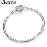 BAOPON High Quality Authentic Silver Color Snake Chain Fine Bracelet Fit European Charm Bracelet for Women DIY Jewelry Making